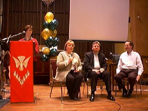 Sally Start answers a question put to the panel. From left to right: